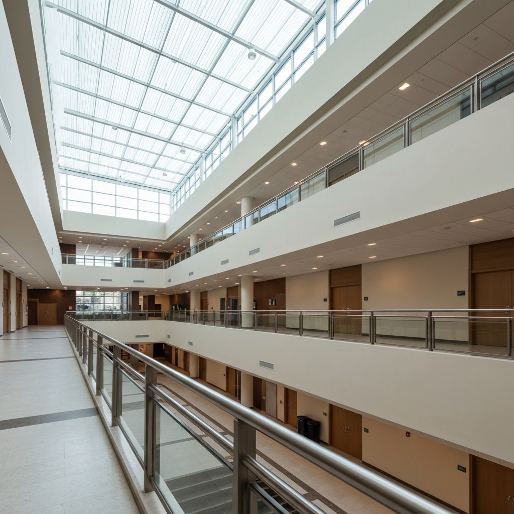 Specialized railing requirements for healthcare facilities including infection control, ADA compliance, and patient safety.
